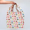 Our tote-bags are made from light polyester. They are very durable and can carry 6-8 kg. When it is tucked into the little purse, it consumes very little space – only 13,5×13,5 cm – so you will be able to carry it with you wherever you go.