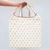 Our tote-bags are made from light polyester. They are very durable and can carry 6-8 kg. When it is tucked into the little purse, it consumes very little space – only 13,5×13,5 cm – so you will be able to carry it with you wherever you go.